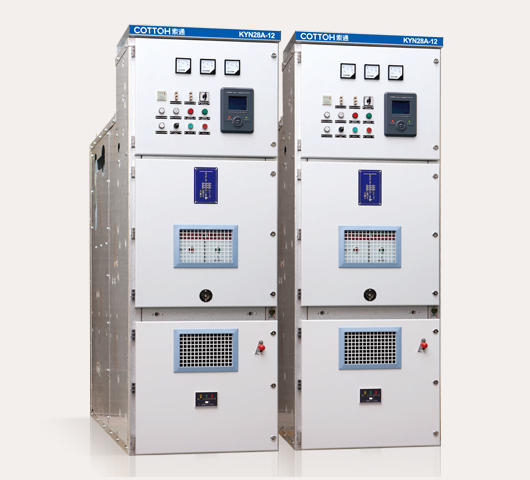 KYN28A-12(GZS1-12)型戶內交流金屬鎧裝中置式開關設備。它適用于三相交流額定電壓12kV,額定頻率50Hz電力系統,用于接受和分配電能并對電路實行控制、保護及監(jiān)測。